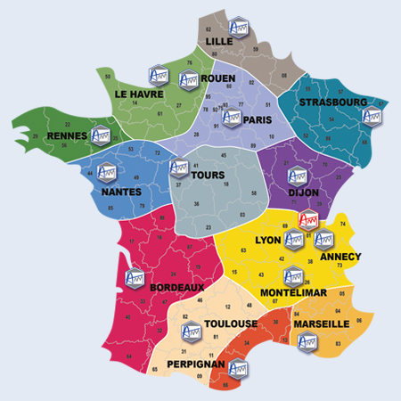 Pour connaitre nos équipes, les coordonnées et la localisation d’une de nos agences, cliquez sur les zones d’intervention situées sur la carte ci-dessous.